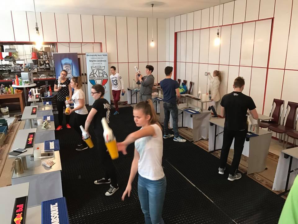 - Trénovanie, spoločná a neskôr individuálna príprava na záverečnú skúšku pri ktorej absolventi budú pripravovať – 1 drink working flairom, 1 drink exhibition flairom kde vychádzajú z trikov ktoré sa naučili na kurze plus môžu zapojiť vlastnú kreativitu.
